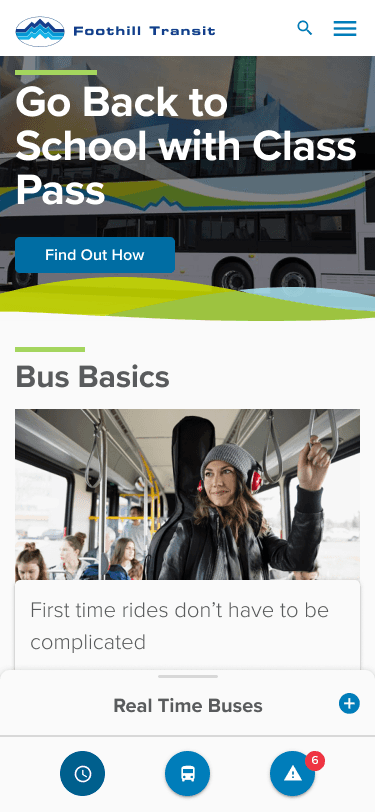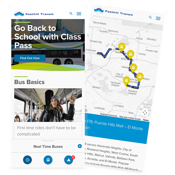 Led a team to redesign the Foothill Transit website, creating a cleaner, more intuitive experience that brings real-time bus tracking and trip planning directly to riders.